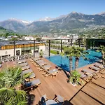 Das Hotel Therme Meran - Terme Meran mit 145 Zimmern liegt in etwa 5 Gehminuten Entfernung vom Fluss Passer. Das Hotel verfügt über einen Infinity-Pool sowie ein Restaurant.